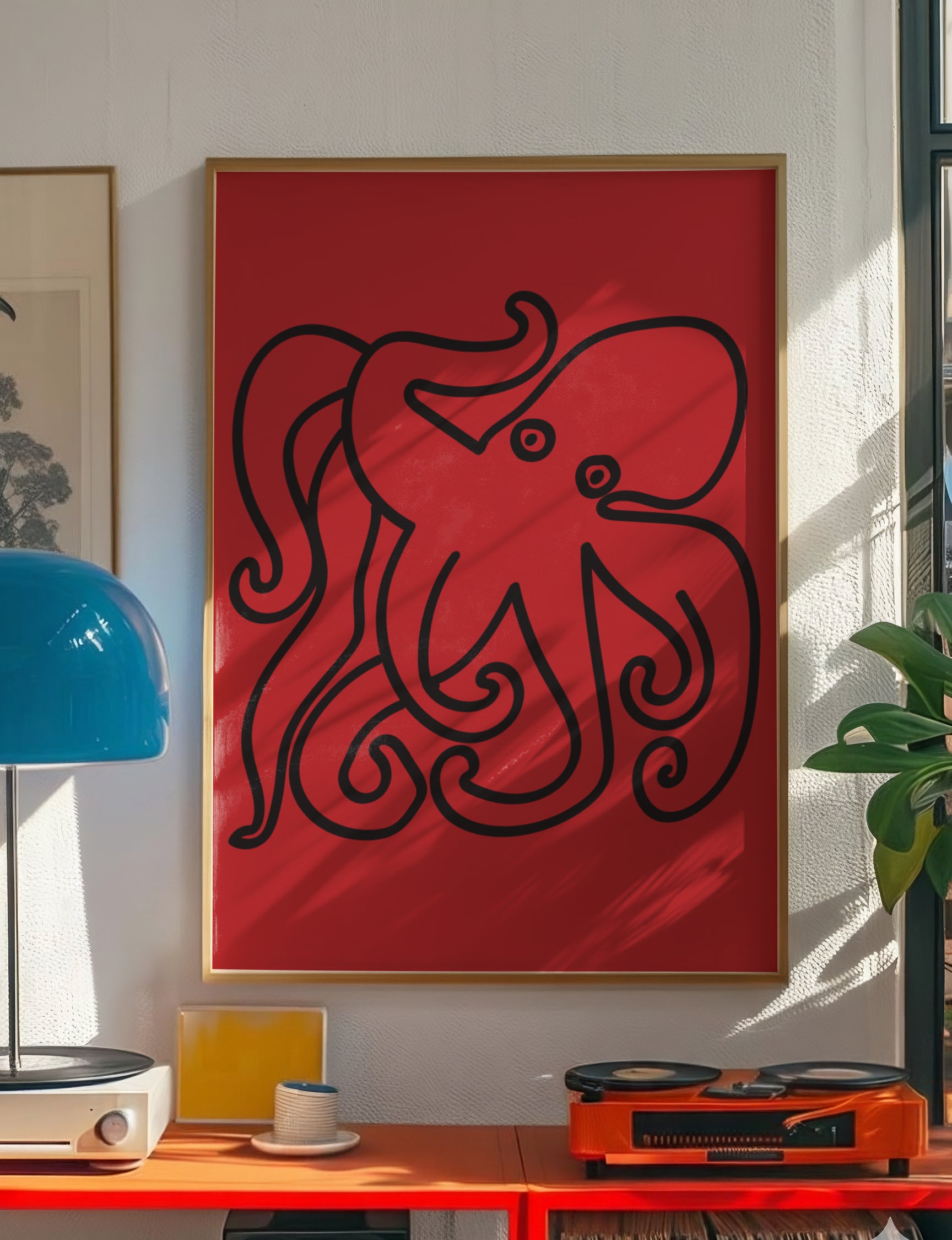 This vibrant sea art captures the playful spirit of a deep-sea creature. With its curling tentacles and curious gaze, The Happy Wanderer reminds us of the endless mystery and fun that lie beneath the waves. It's the perfect piece for anyone who loves the ocean's inhabitants.